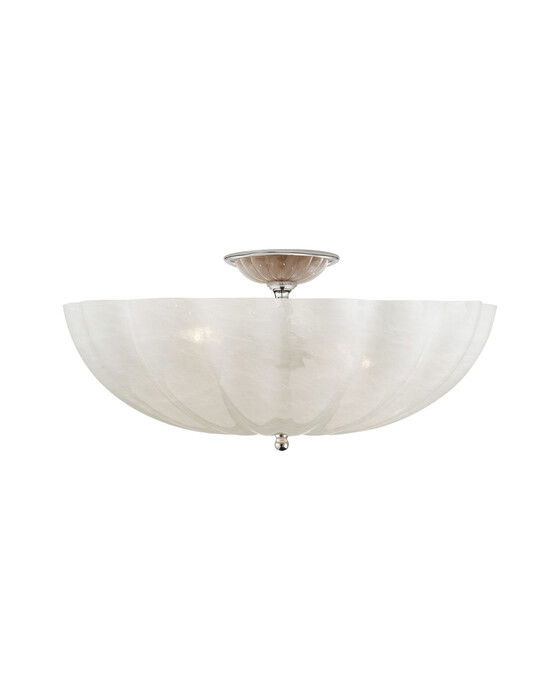 Rosehill by AERIN utstrålar en subtil, feminin skönhet med sin minimalistiska design som kombinerar räfflat, vitt glas med diskret metallarbete i polerad nickel. Den avger en varm, inbjudande glöd som passar perfekt i minimalistiska utrymmen eller traditionellt inredda rum.