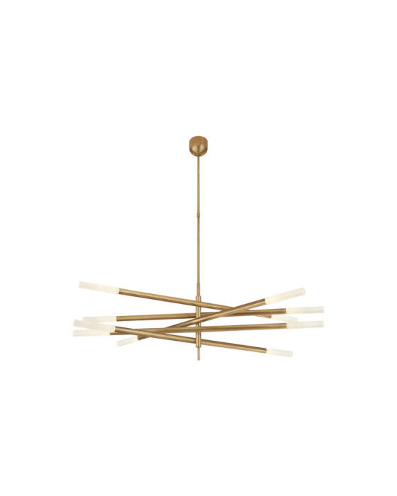 Den eleganta Rousseau Grande 10L takkronan i mässing från Visual Comfort är en del av den populära Rousseau-serien designad av Kelly Wearstler. Med enkla former och moderna designdetaljer ger den en mångsidig belysning som passar perfekt i moderna interiörer.