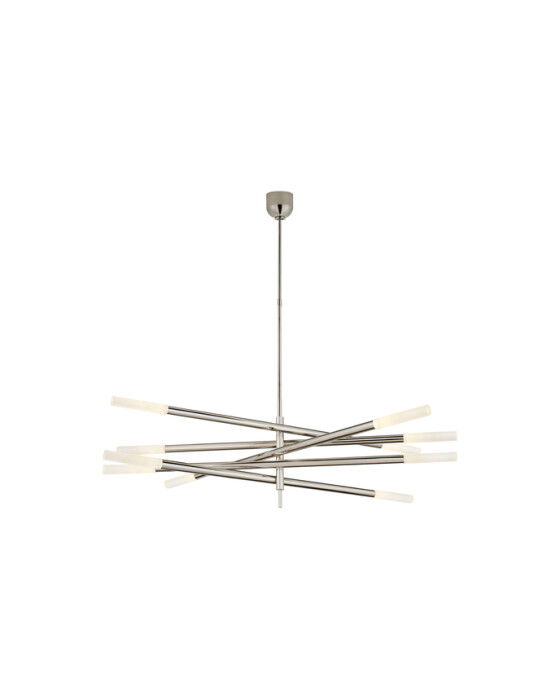 Den distinkta Rousseau-serien från Kelly Wearstler erbjuder en mångsidig belysningslösning för moderna interiörer. Med en mix av metallutföranden och kristall- eller glasdetaljer skapar denna takkrona en utsökt atmosfär.