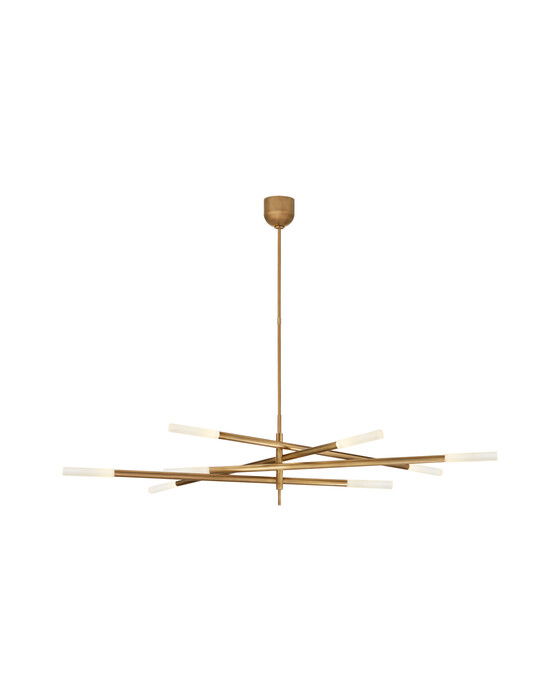 Den eleganta Rousseau Grande 8L takkronan i mässing från Visual Comfort är en del av den distinkta Rousseau-serien designad av Kelly Wearstler. Med enkla former och moderna designdetaljer passar denna takkrona perfekt in i moderna interiörer, och skapar en lyxig atmosfär.