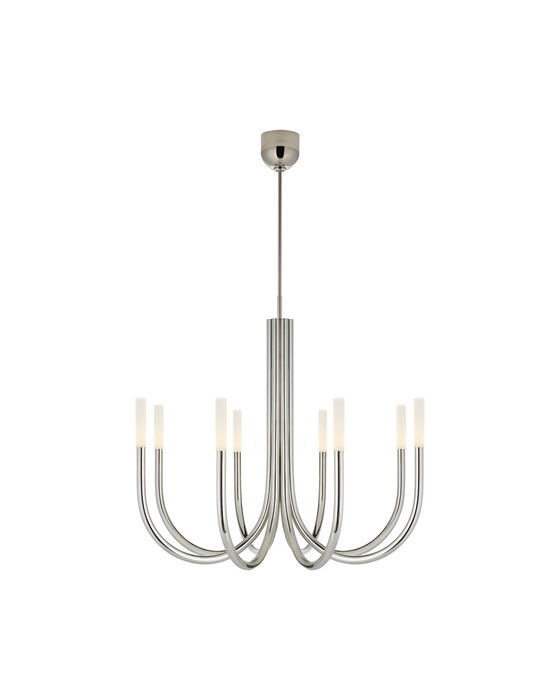 Rousseau-serien från Kelly Wearstler erbjuder en elegant belysning med en modern och enkel design. Med olika metallutföranden kombinerat med kristall och glas skapar denna takkrona en lysande atmosfär i moderna interiörer.