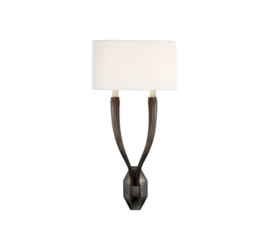 Utforska den eleganta serien Ruhlmann av Chapman & Myers som erbjuder olika belysningsalternativ för alla utrymmen i hemmet. Denna vägglampa i dubbel brons är strömlinjeformad med räfflade detaljer och eleganta skärmar och ger en sofistikerad belysning.