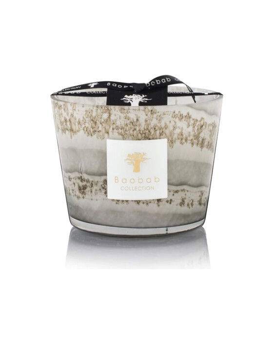 Atacama doftljuset är en vacker ljuslykta i munblåst glas med subtila toner av grått. Med horisontella skikt och organiska skärvor skapar det en unik estetik. Doften av citrus, bergamott, earl grey te och mysk skapar en behaglig atmosfär.