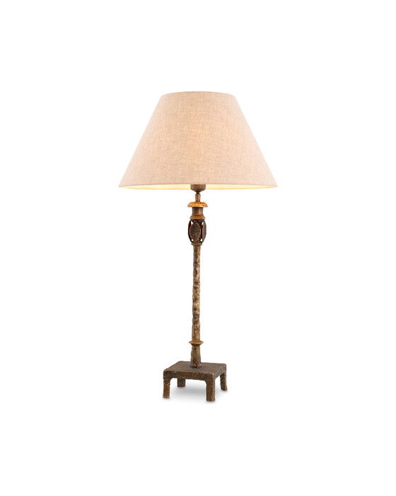 Den Santoro bordslampa är en imponerande pjäs som kommer att lyfta vilket rum som helst. Denna lampa är handgjord av pressad mässing med en antik mässing finish, vilket ger elegans och sofistikering. Santoro inkluderar också en vacker lampskärm i linneblandning som kompletterar den antika mässingfinishen. Oavsett om du vill skapa stämning i ditt sovrum, vardagsrum eller hemmakontor, är Santoro bordslampa det perfekta valet.