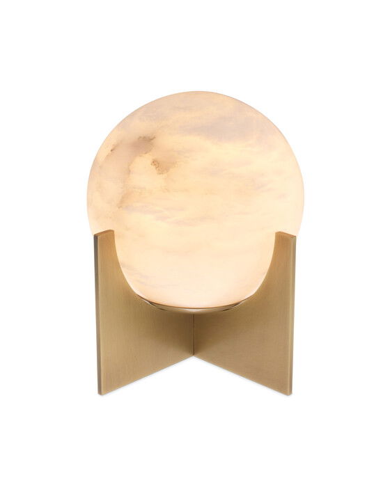 Den eleganta bordslampan Scorpios från Eichholtz påminner om månen och passar perfekt på nattduksbordet eller sidobordet i sovrummet, hallen eller vardagsrummet. Med en stilren design i antik mässingsfinish och en vit kula av alabaster som sprider ett dämpat ljus, skapar den en ombonad känsla i rummet.