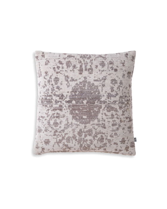 Denna handgjorda prydnadskudde från Eichholtz har en framsida i 100% viskos och baksida i 100% bomull. Den har ett grått mönster på en naturvit bakgrund och är ett elegant komplement till soffan eller sängen för att skapa en exklusiv och bekväm atmosfär.