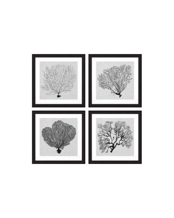 Utforska den magiska världen av Shadow Sea med dessa vackra 4-delade fan-tryck skapade av konstnären Grace Popp. Dessa eleganta monokroma konstverk är inramade i svarta träramar och skyddas av glas, vilket ger en touch av elegans till ditt hem. Skulle vara en vacker tillägg till alla rum, antingen som ett collage eller separata konstverk.