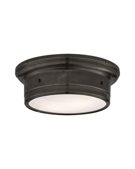 Small Siena Flush Mount in Bronze with White Flat Glass är en stilren och elegant taklampa från Visual Comfort. Med dess klassiska design och högkvalitativa material passar den perfekt in i de flesta rum.