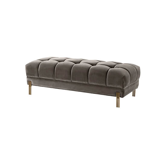 Sienna är en stilfull bänk i grå sammet med borstade mässingsben som ger hög komfort med stil. Perfekt att ha i exempelvis sovrummet framför sängen. Bänken är mycket bekväm och mjuk och ger en lyxig känsla med sina borstade ben i mässing.