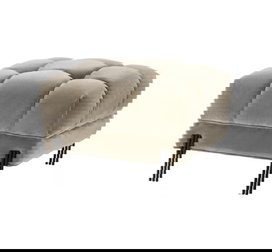Sienna är en stilfull fotpall i grå sammet med svarta borstade ben som erbjuder hög komfort med stil. Perfekt att placera i sovrummet eller framför fåtöljen Sienna för en extra touch av lyx.