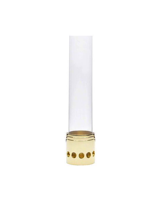 Denna Skultuna ljushållare i polerad mässing och glas är en klassiker som återuppstått från Skultunas arkiv. Med en diameter på 5,5 cm och en höjd på 27 cm är denna ljuslykta perfekt för blåsiga dagar, uteplatsen och det dukade bordet. Dess tidlösa design passar fint i alla hem.