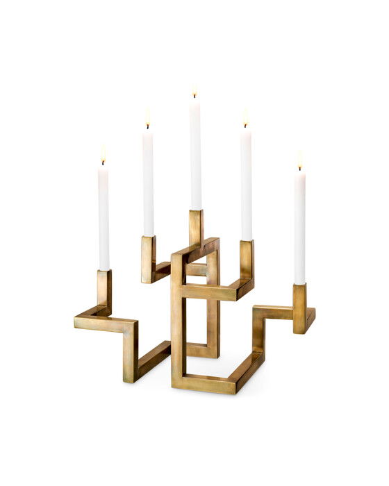 Uppgradera ditt hem med den ikoniska Eichholtz Candle Holder Skyline. Denna exklusiva ljusstake i vintage mässing exemplifierar överlägsen hantverk och tidlös design, perfekt för moderna inredningar. Den ger en sofistikerad touch till vilken miljö som helst och lyser upp ditt utrymme med elegans och charm.