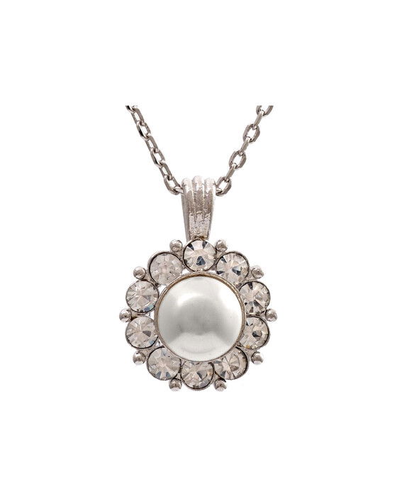 Halsbandet Sofia har en exklusiv design som gör den till en mångsidig accessoar för alla looks och tillfällen. Smycket har en delikat pärla i mitten omgiven av lysande kristaller på en silverkedja. Ett omedelbart favoritval för den stilmedvetna.