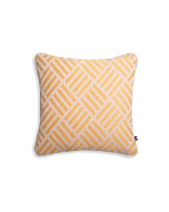 Den eleganta Sonel prydnadskudden i gult randigt mönster är ett perfekt tillägg till soffan, fåtöljen eller sängen för att skapa en lyxig känsla i rummet.