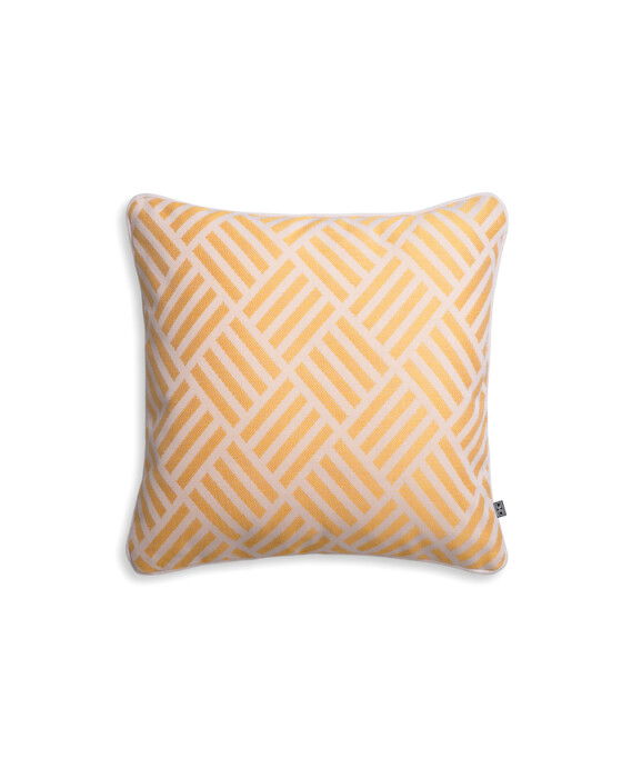 Den eleganta prydnadskudden Sonel i en vacker gul färg är perfekt för att addera en touch av lyx till ditt hem. Med sitt randiga mönster passar den utmärkt i soffan, fåtöljen eller sängen.