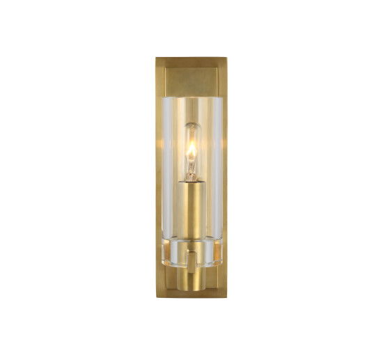 Ge ditt hem en touch av elegans med den vackra Sonnet Petite vägglampan i antik mässing och klarglas. Med sin stilrena design och höga kvalitet kommer denna lampa definitivt att lysa upp rummet på ett sofistikerat sätt.