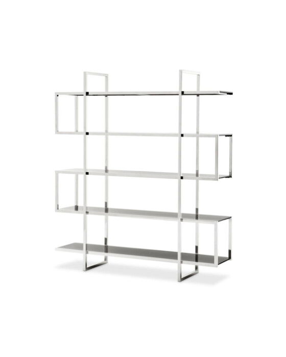 Den attraktiva hyllan i rostfritt stål och svart glas från Eichholtz är en perfekt tillägg till ditt hem. Denna outlet-vara erbjuds i begränsad kvantitet och kan ha mindre slitage eller repor. Eventuella defekter kommer bekräftas med bildunderlag innan leverans.
