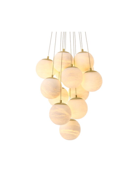 Den eleganta Sphinx taklampa i alabaster och antik mässingsfinish lyser upp som månen en klar natt. Alabaster är ett naturligt material där varje del skiljer sig i färg, opacitet och ådring. Lampans kablar är justerbara vilket gör det möjligt att skapa olika sammansättningar. Sphinx är en essentiell del som skapar en harmonisk glöd i vilket rum som helst.