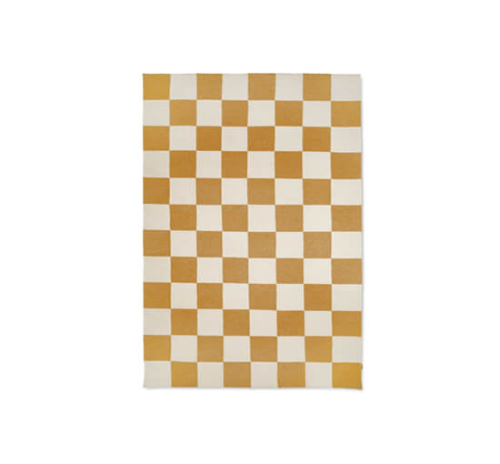 Square är en tidlös handvävd matta i rutigt mönster med nyanser av vit och gul från Classic Collection. Mattan är tillverkad av ull i flätväv och har en mjuk yta som är skön att gå på. Perfekt att placera vid soffgruppen eller sängen för att ge rummet ett fräscht och livfullt uttryck.