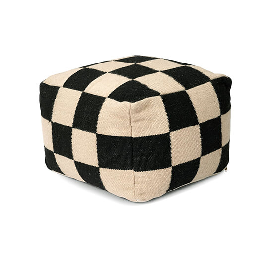 Denna stilrena sittpuff är handgjord av en slätvävd ullmatta med ett luftigt rutmönster i svart och naturbeige. Det klassiska mönstret ger ett fräscht, skandinaviskt uttryck som passar lika bra i modern som i klassisk inredning. Den kubiska formen gör att den fungerar lika bra som extra sittplats, bekväm fotpall eller dekorativ accent i vardagsrum, hall eller sovrum och tillför både stil och funktion till rummet. Classic Collection är ett svenskt varumärke som designar produkter inom inredning i en tidlös design. Sittpuffen från Classic Collection är handgjord och mindre avvikelser kan förekomma i mönster och färg. Detta gör att varje produkt är unik i sig.
