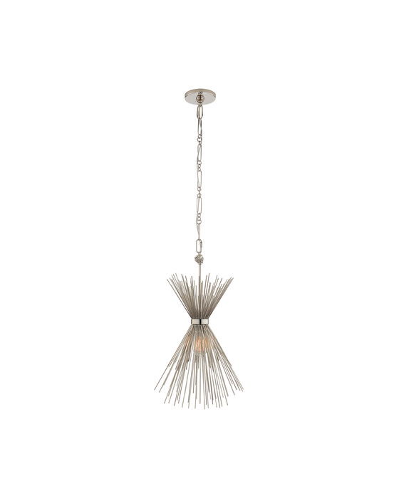 Strada Narrow taklampa är en del av Kelly Wearstlers serie med organiska former och strömlinjeformad metall. Med delikata skulpturer av strålande piggar skapar denna taklampa ett randigt sken över tak och väggar, vilket bidrar till en unik dynamik i alla interiörutrymmen.