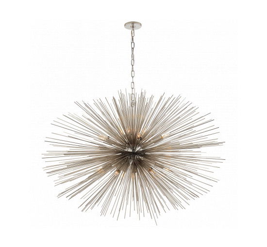 Strada taklampa oval silver L är en del av Kelly Wearstlers serie med skulpturala lampor som skapar ett unikt och dynamiskt utseende i ditt hem. Med organiska former och strömlinjeformade metallpinnar avger denna lampa ett randigt sken över tak och väggar.