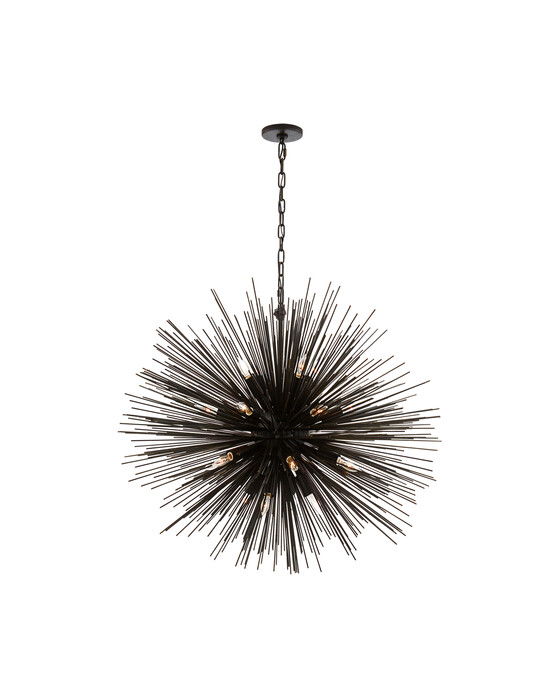 Strada taklampa rund svart L är en del av Kelly Wearstlers serie som kombinerar livfulla former med strömlinjeformad metall. Genom sina skulpterade strålar av ljus skapas ett randigt sken som ger en unik dynamik till varje interiörutrymme.