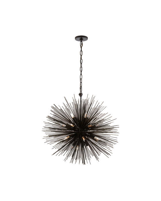Strada taklampa rund svart M är en delikat och stilren taklampa designad av Kelly Wearstler. Med sina organiska former och strömlinjeformade metallskulpturer skapar denna lampa ett randigt sken över tak och väggar, vilket ger en unik dynamik till ditt interiörutrymme.