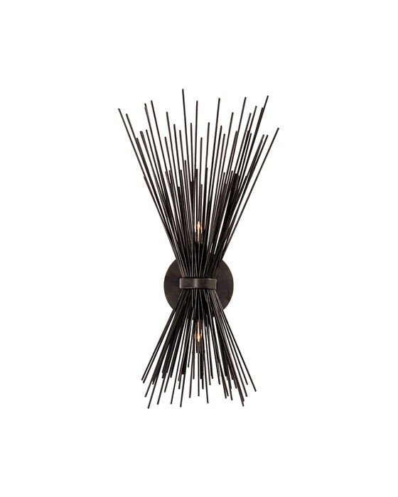 Strada vägglampa svart S är en del av Kelly Wearstlers serie som hyllar livfulla, organiska former och strömlinjeformad metall. Den har delikata skulpturer av strålande piggar som avger ett randigt sken över tak och väggar. Med dess plafonder, ljuskronor och vägglampor skapar Strada en unik dynamik till alla interiörutrymmen.