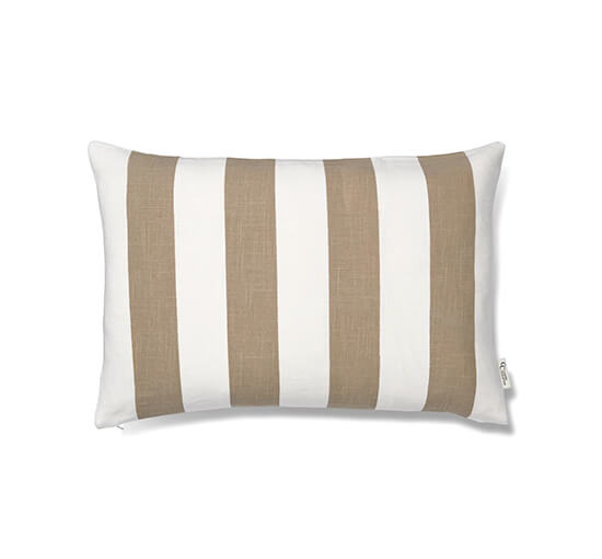 Detta kuddfodral i beige med breda ränder i vitt skapar en harmonisk och tidlös look som passar perfekt i alla hem. Tillverkat i mjuk bomull med en stilren design som ger en diskret elegans till din soffa, fåtölj eller säng. Varje kuddfodral från Classic Collection är handsytt vilket gör varje exemplar unikt med små avvikelser i mönster och färg.
