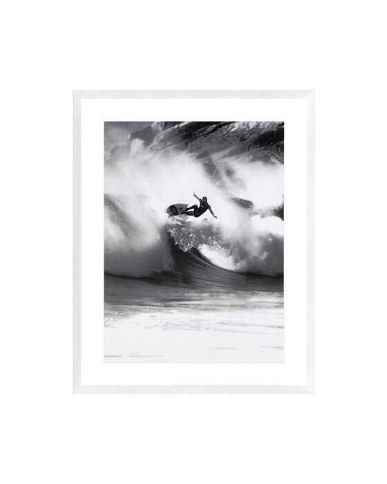 Surf Aerial Dance är en stilren inramad tavla med en svartvit bild av en surfare. Med sitt eleganta utförande passar den perfekt in i alla rum och ger en känsla av äventyr och frihet.