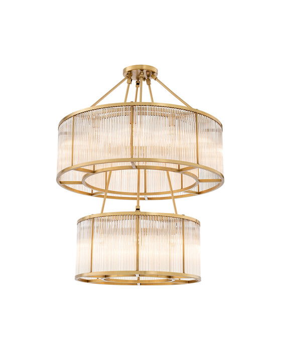 Den elegant designade Bernardi takkronan från Eichholtz är inspirerad av Art Deco-stilen och ger en touch av lyx till vilket rum som helst. Med en antik mässingsfinish och gnistrande glasstavar skapar den en sofistikerad atmosfär.