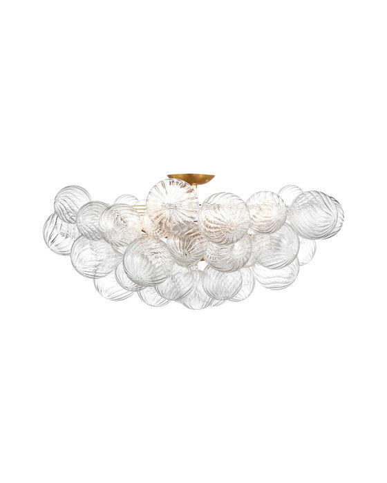 Visual Comforts Talia 38″ plafond guld är en handgjord ljusarmatur designad av Julie Neill. Med sina glasglober fästa vid metallramar skapar denna serie en lekfull och fantasifull effekt som passar in i olika interiörer. Med olika storlekar och konfigurationer finns det en Talia-armatur som kan ge ditt rum en elegant touch av gnistrande glas och blanka metaller.