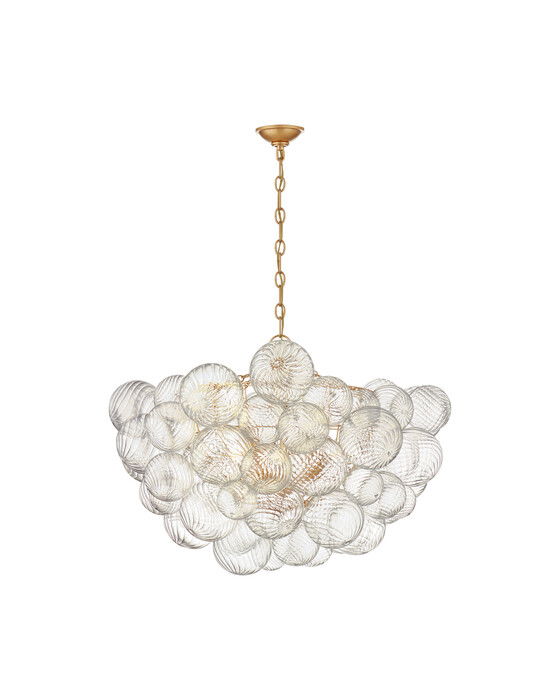 Den eleganta Talia takkronan i guld från Visual Comfort är en underbar ljusarmatur som lyfter vilket rum som helst till nya höjder. Med sin handgjorda glasdesign och lekfulla virvlar skapar den en unik och fängslande effekt som garanterat imponerar.