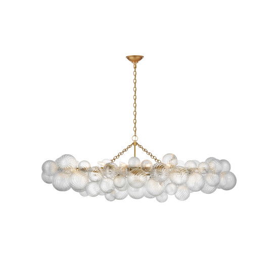 Den eleganta Talia takkronan i guld från Visual Comfort är designad av Julie Neill och är en perfekt blandning av klassisk elegans och modern lekfullhet. Med sina vackra glasglober och metallramar skapar den en fantastisk ljuseffekt i alla rum.