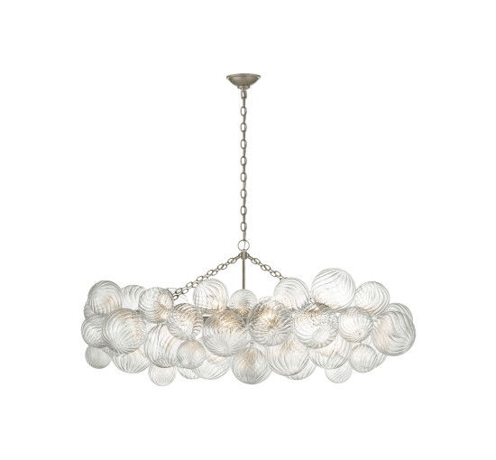 Visual Comforts Talia takkrona linjär silver är en elegant och lekfull ljusarmatur designad av Julie Neill. Med sina vackra glasglober och metallramar skapar den en fantasifull effekt som passar perfekt i alla interiörer.