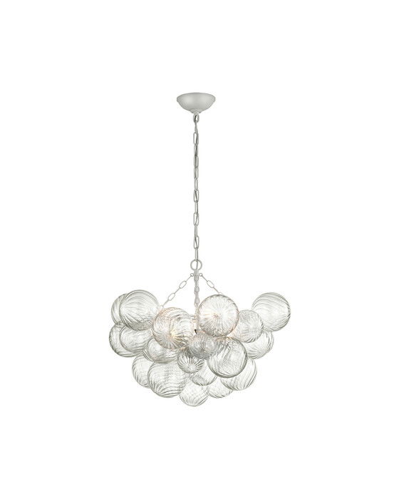 Den eleganta och lekfulla Talia takkronan i vitt från Visual Comfort är enastående med sina glasglober dekorerade med virvlar. Skapa en fantasifull atmosfär och glittrande ljuseffekt med denna klassiska ljusarmatur.