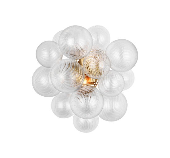 Denna fantastiska Talia vägglampa i guld från Visual Comfort är designad av Julie Neill och tar den klassiska globformade ljusarmaturen till en ny nivå. Med flera glasglober dekorerade med virvlar fästa vid metallramar skapar den en lekfull och fantasifull effekt som lyfter vilket rum som helst.