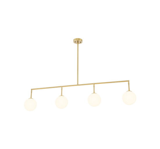 Den antika mässingsfinishen och det eleganta designen hos takkronan Tara ger en touch av Mid-Century Modern till din matsal eller köksö. Tillverkad av metall och med fyra klot som hänger på en stång på jämnt avstånd, är denna taklampa både vacker och funktionell.