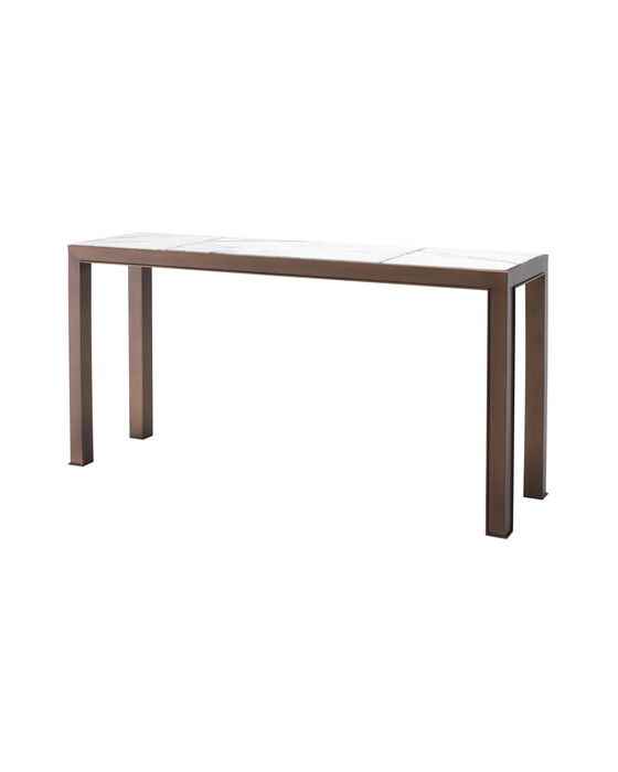 Det eleganta Tardieu konsolbordet i lilac är en stilren möbel i retrostil med raka linjer. Bordet har en dekorativ toppskiva av vit marmor, även känd som Italian Bianco Lilac. Perfekt för att visa upp dina favorit coffee table böcker, växter eller fotoramar. Observera att denna produkt är en outlet-vara och kan ha mindre slitage eller repor, men inga större skador.