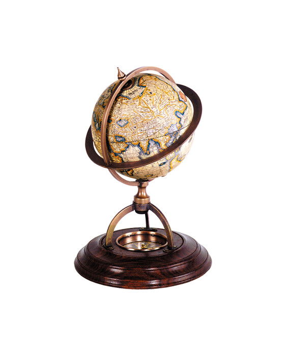 Terrestrial Compass är en klassisk jordglob som återskapar en glob från 17: e århundradet komplett med compass. Den är både vetenskaplig, historisk och dekorativ, perfekt för att placeras på skrivbordet. Observera att produkten inte är UV-resistent.