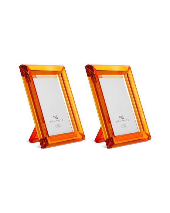Framhäv dina älskade minnen med Theory fotoramar från Eichholtz. Detta set med två ramar, tillverkade av glänsande orange kristallglas, skapar en livfull display av sofistikering i ditt vardagsrum. Perfekt för att lägga till en färgklick och hantverkskunnande i vilket sovrum eller kontor som helst.