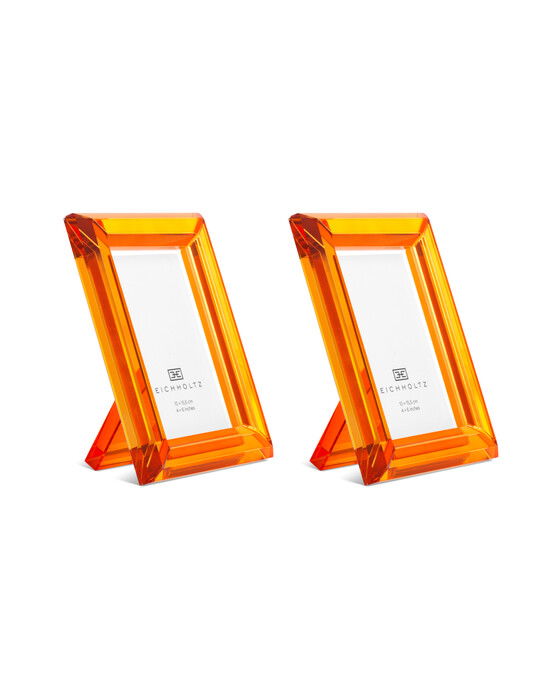Framhäv dina älskade minnen med Theory fotoramar från Eichholtz. Detta set med två ramar, tillverkade av skimrande orange kristallglas, skapar en livfull visning av sofistikering i ditt vardagsrum. Perfekta för att lägga till en splash av färg och konsthantverk till vilket sovrum eller kontor som helst.
