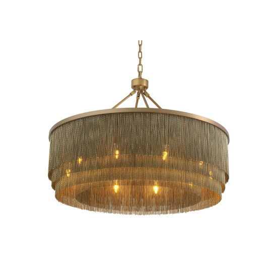 Den imponerande Tissot takkronan i antik mässingsfinish ger en fantasifull touch till ditt utrymme med sin iögonfallande design. Med fyra rader av tunna kedjor som påminner om fransklänningar från 1920-talet, utstrålar den glamouren och extravagansen från The Great Gatsby. Kombinera med små Tissot takkronor för extra dimension i rummet.