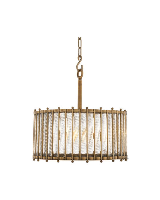 Den eleganta taklampan Tiziano kombinerar vintagestil och modernism för att skapa en klassisk atmosfär i ditt hem. Med en mässingsram och handgjorda glasstänger ger denna taklampa en touch av lyx till vilket rum som helst.