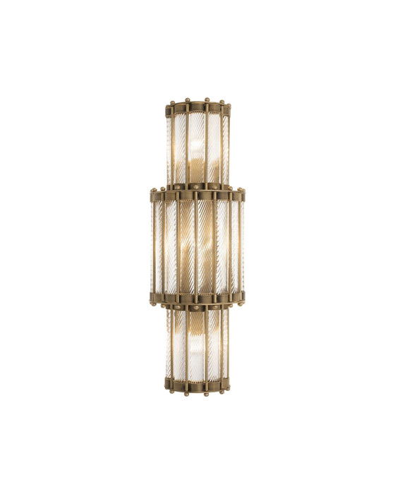 Den eleganta Tiziano vägglampan från Eichholtz är tillverkad i antik mässing och handblåst glas, vilket ger den en unik och tidlös design som passar perfekt i både traditionella och moderna hem.