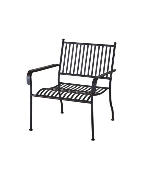 Den trevliga loungestolen Toscana är perfekt för trädgården eller balkongen med sin stilrena svarta järnstomme. Kombinera den gärna med Toscana bord för en enhetlig estetik. Observera att stolen inte är frosttålig.