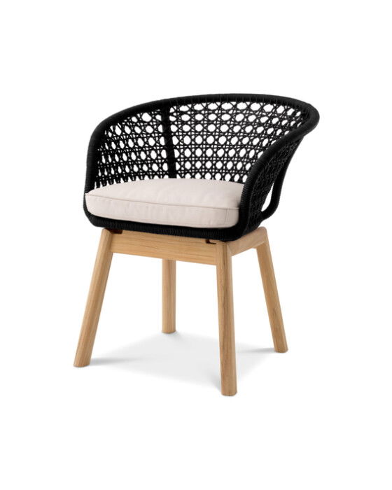 Den retro-inspirerade matstolen Trinity blandar färger och material på ett smakfullt sätt. Benen är tillverkade i tålig teak och rygg samt sits i svart, vävt rep. Trinity har en mjuk sittdyna för optimal komfort.
