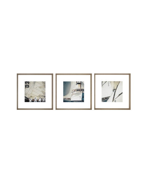 Detta set med tre fotografier skildrar segelbåtarnas imponerande master och segel på nära håll. En hyllning till det hantverk och den precision som ligger bakom klassiskt båtliv. Tavlorna förmedlar en känsla av närvaro och detaljrikedom – en stilsäker inredningsdetalj för den seglingsintresserade.