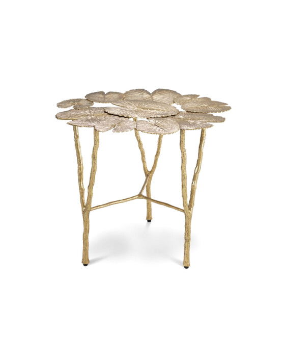 Ge ditt hem en touch av tropiskt paradis med det eleganta Tropicale sidobordet från Eichholtz. Det polerade massiva mässingsbordet har en unik näckrosbladform som ger en touch av glädje, renhet och lycka till ditt rum.